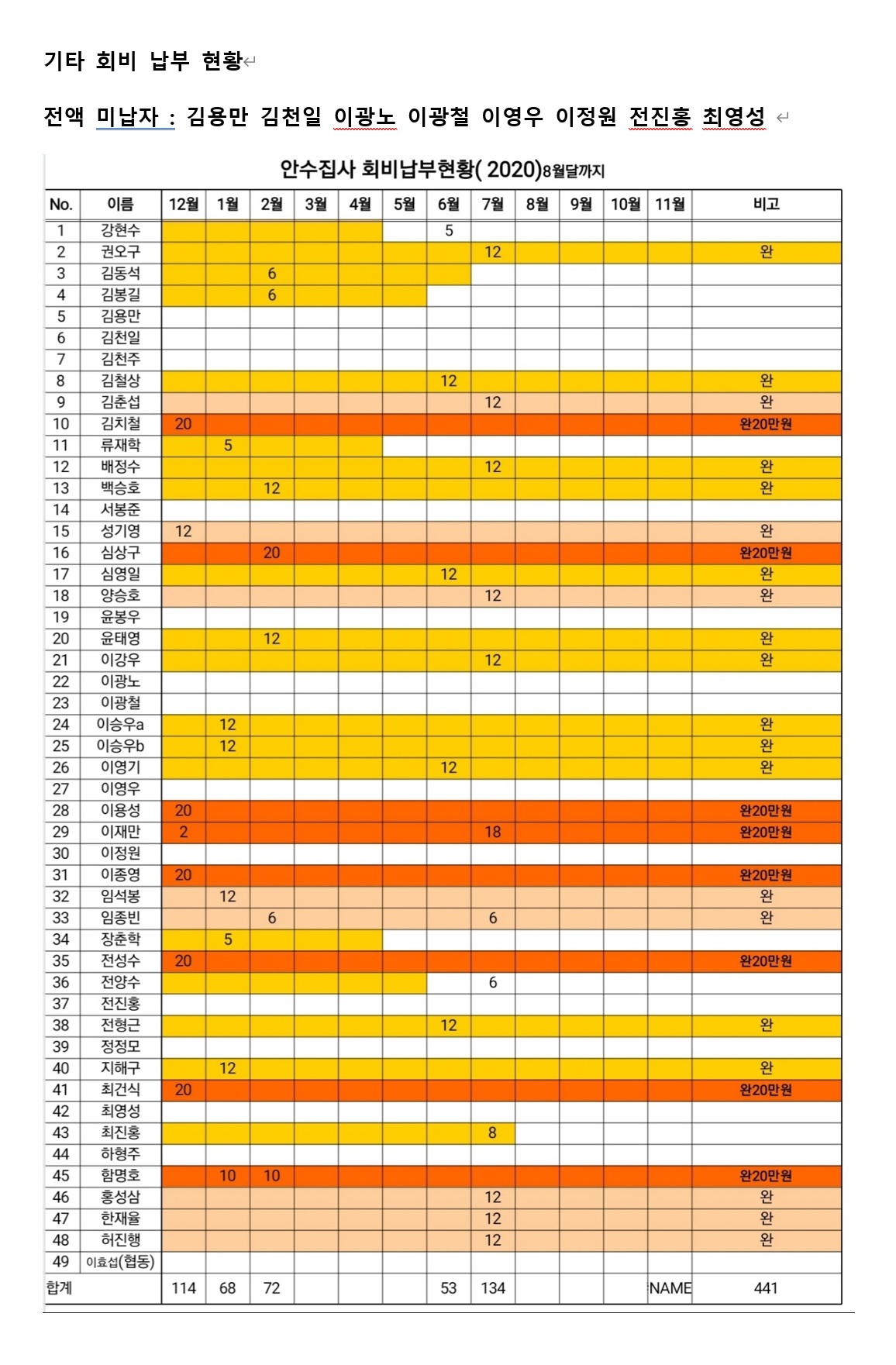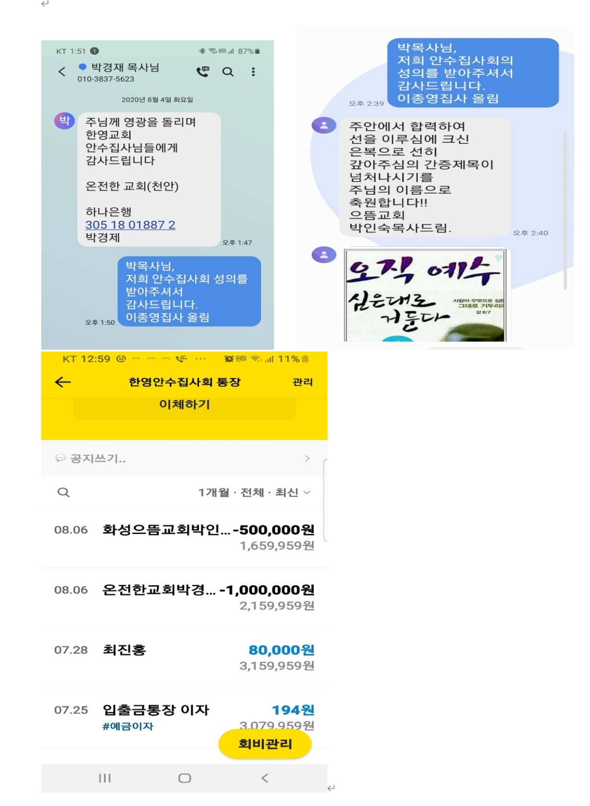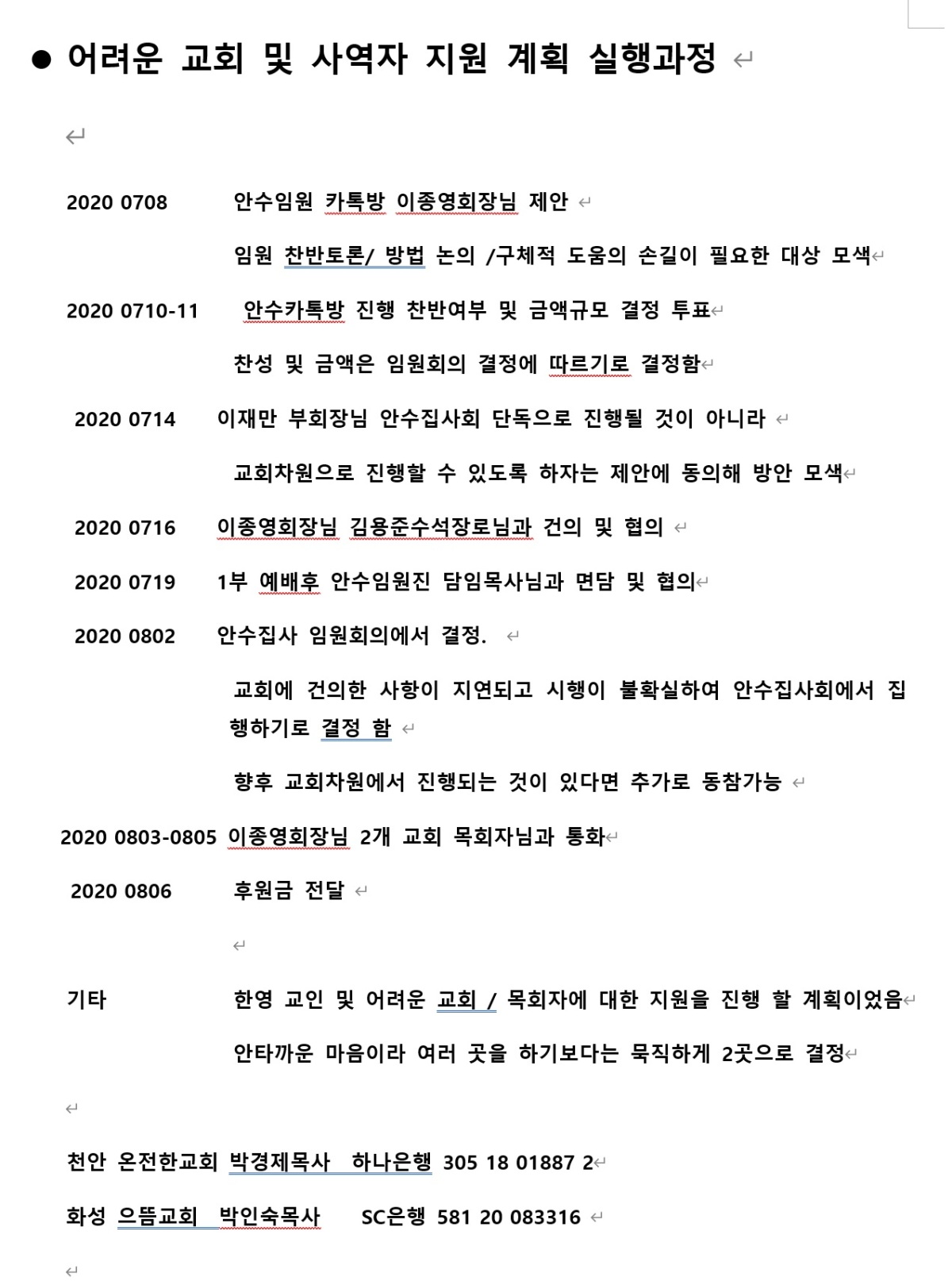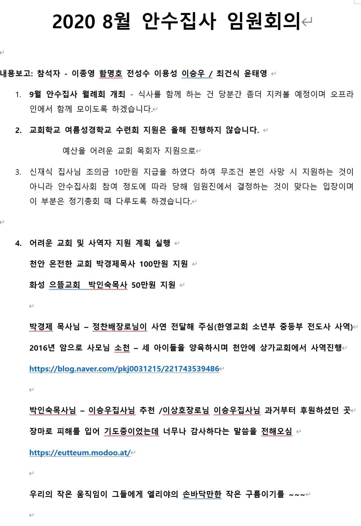 8월 안수집사 임원회의 및 어려운 교회 지원 실행보고