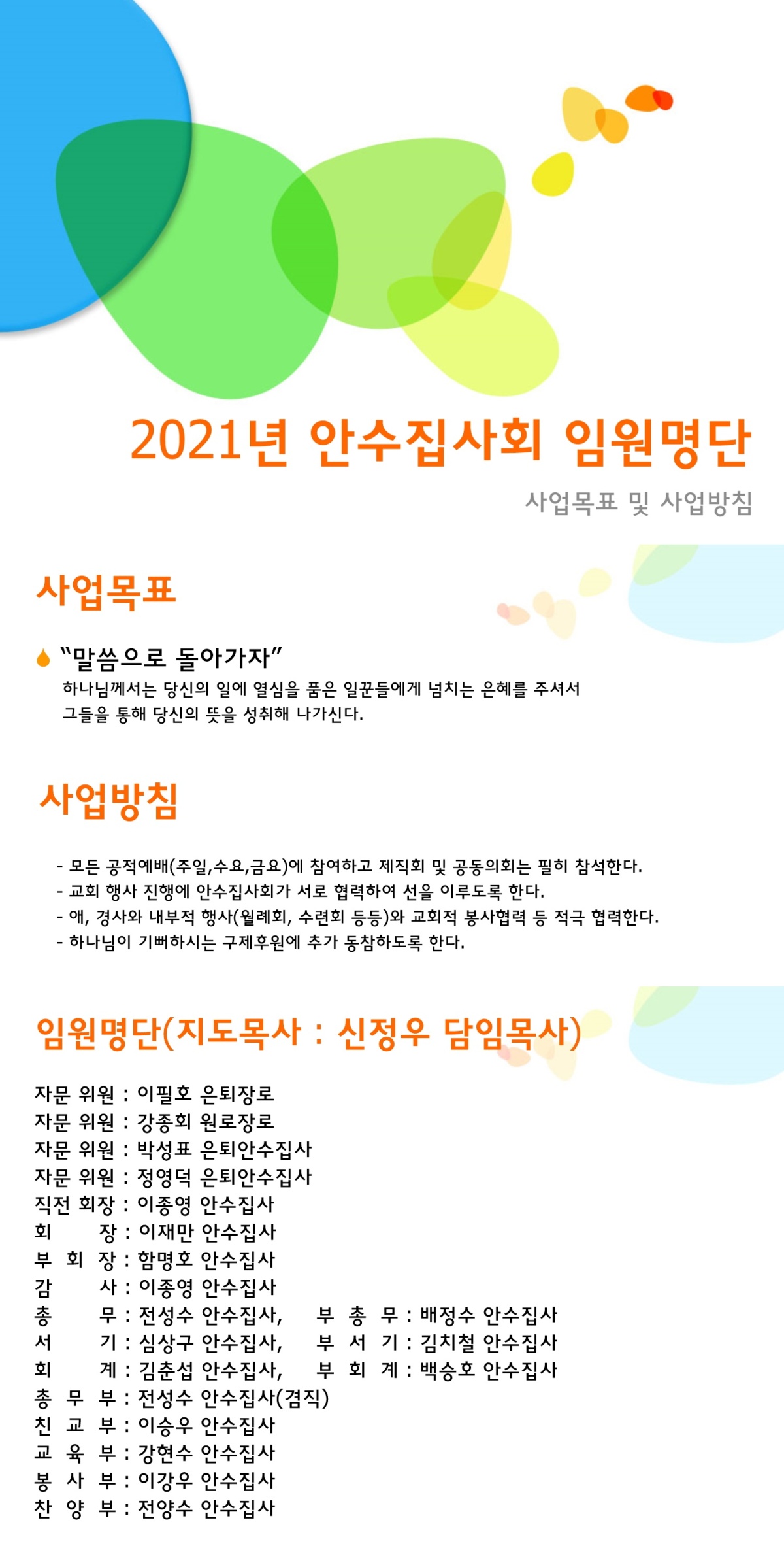 2021년 안수집사회 임원명단