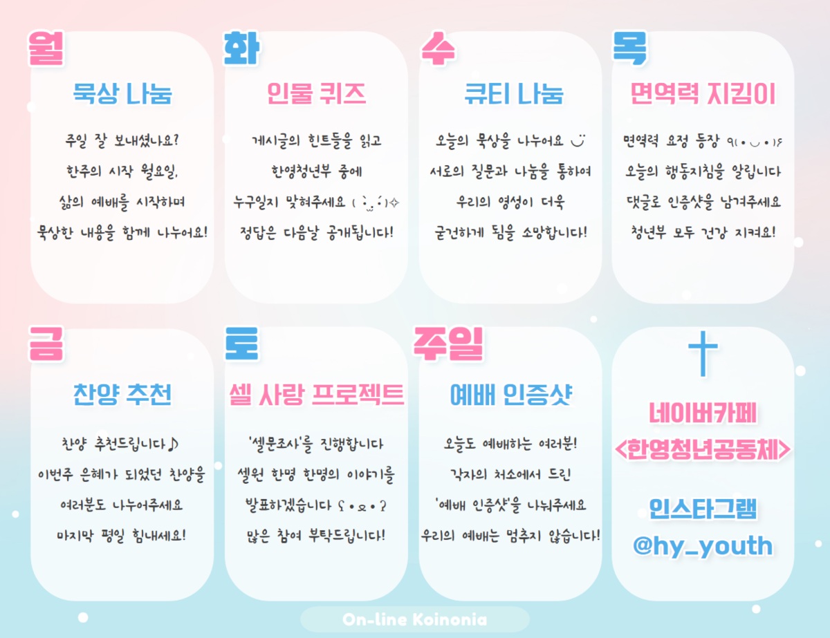 [ 고난주간 10분 합심기도 / 온라인 코이노니아 ] - 늦봄 한영청년부 소식
